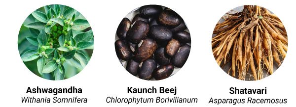 Enhances vitality, rejuvenation and the nervous system: The well-known Ayurveda herbs blend like Ashwagandha, Kaunch Beej and Shatavari, when used externally as oils, enhance blood flow in the specific area, promote relaxation, improve skin complexion, restore internal equilibrium and support overall muscle wellness.